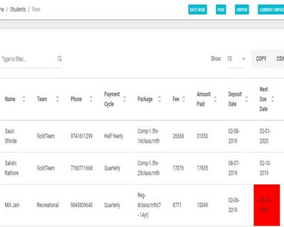 Automate admission ,trials,memberships and referrals using the Academy Management System. Moreover, the system incorporates tools to record and manage general enquiries of candidates by collecting enquirer details.Data export option is available for all your data.