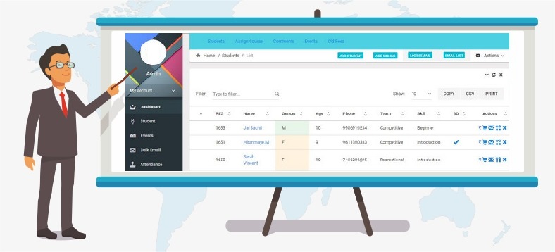 ConnectMyGym offers a complete set of features to manage your entire business, all in one easy to use platform.Irrespective of the sport played at the academy, the software automates all the manual procedures whether it is the admissions,staff management ,attendance management, expenses and revenue management, assessments,competitions or bulk emailing and empowers the management.Is is one of the most user-friendly software that helps in connecting the academy owners,coaches and parents on a single platform. Try it today and have complete control of your business.